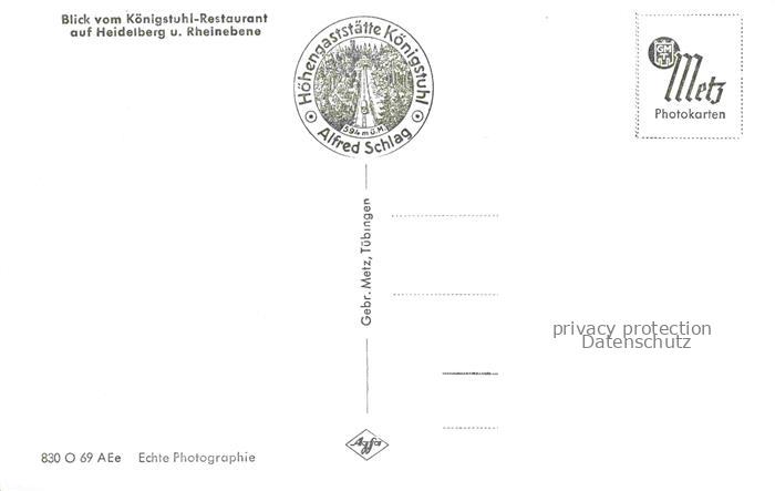 74043823 HEIDELBERG Neckar Blick vom Koenigstuhl Restaurant postalisch nicht gelaufen Erhaltung siehe scans [WerneD78] KatCode: 11110008221000