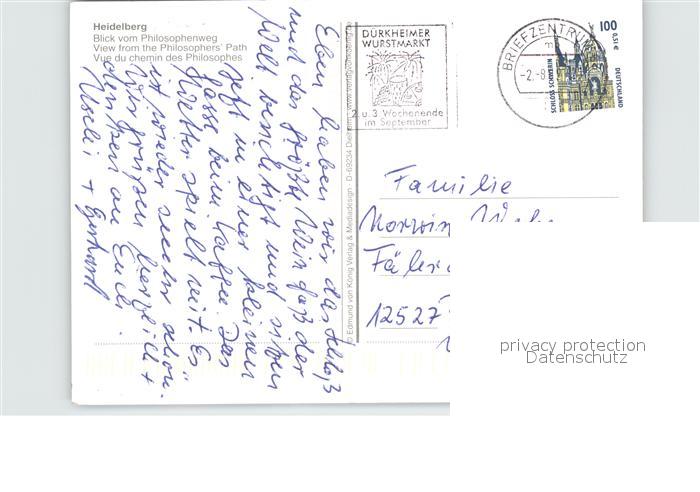 72612555 alte Postkarte Heidelberg Neckar Blick vom Philosophenweg postalisch gelaufen Erhaltung siehe scans [AndreD76] KatCode: 11110008221000