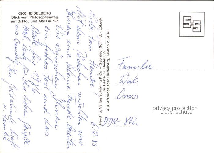 72375276 Heidelberg Neckar Blick vom Philosophenweg auf Schloss und Alte Bruecke postalisch nicht gelaufen Erhaltung siehe scans KatCode: 11110008221000