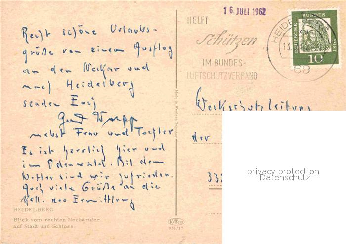 72661400 alte Postkarte Heidelberg Neckar Blick vom rechten Neckarufer postalisch gelaufen Erhaltung siehe scans [AndreD76] KatCode: 11110008221000