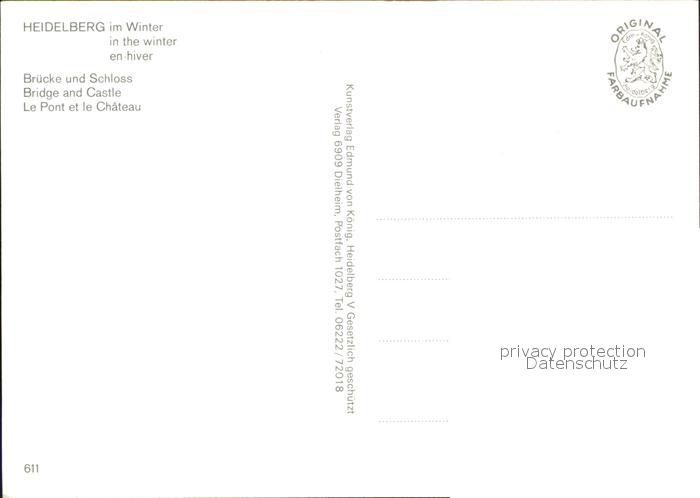 72596574 Heidelberg Neckar Bruecke und Schloss im Winter postalisch nicht gelaufen Erhaltung siehe scans [FriedD77] KatCode: 11110008221000