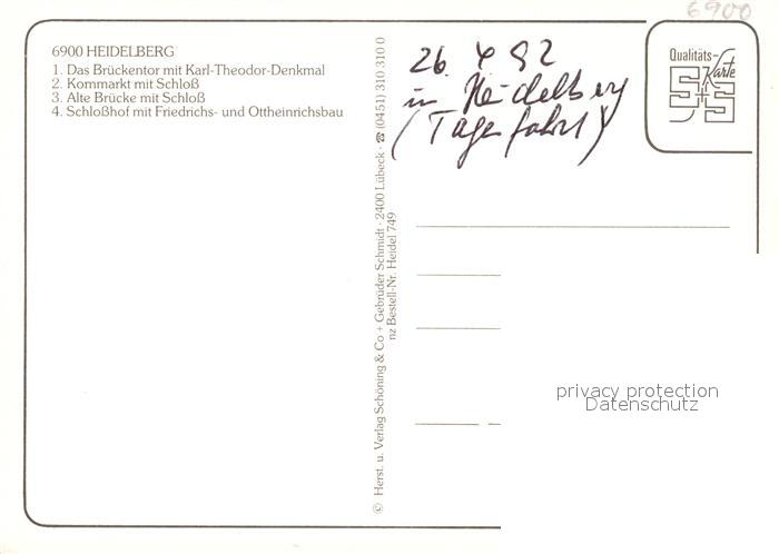 73059349 alte Postkarte Heidelberg Neckar Brueckentor Kornmarkt mit Schloss Alte Bruecke Schlosshof mit Friedrichs und Ottheinrichsbau postalisch gelaufen Erhaltung siehe scans [WerneD78] KatCode: 11110008221000