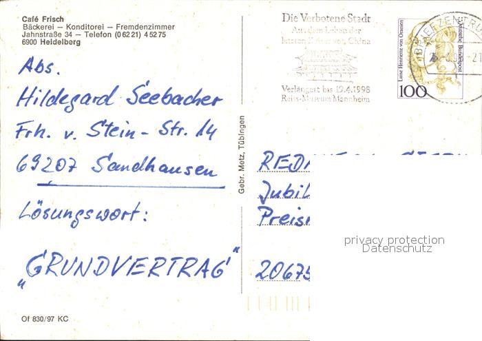 72467332 alte Postkarte Heidelberg Neckar Cafe Frisch Fliegeraufnahme Neckarpartie postalisch gelaufen Erhaltung siehe scans KatCode: 11110008221000