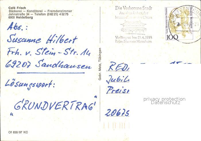 72467403 alte Postkarte Heidelberg Neckar Cafe Frisch Fliegeraufnahme Neckarpartie postalisch gelaufen Erhaltung siehe scans KatCode: 11110008221000
