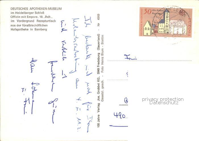 72540249 alte Postkarte Heidelberg Neckar Deutsches Apotheken Museum im Schloss postalisch gelaufen Erhaltung siehe scans [AndreD76 kt119box] KatCode: 11110008221000