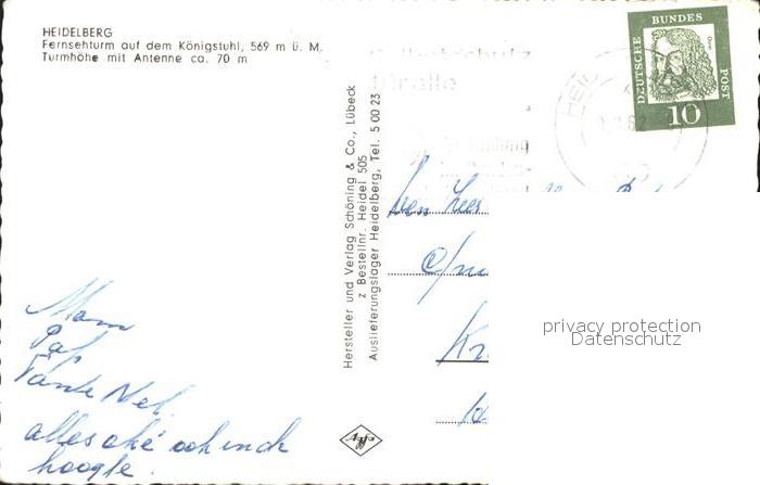 72062903 alte Postkarte Heidelberg Neckar Fernsehturm auf dem Koenigstuhl postalisch gelaufen Erhaltung siehe scans KatCode: 11110008221000