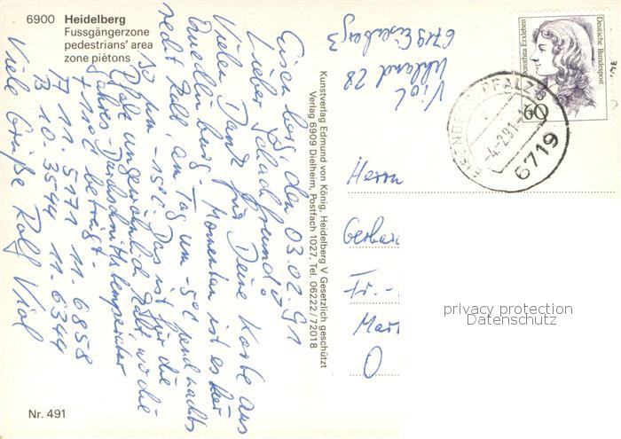 73783812 alte Postkarte Heidelberg Neckar Fussgaengerzone postalisch gelaufen Erhaltung siehe scans [FriedD77] KatCode: 11110008221000