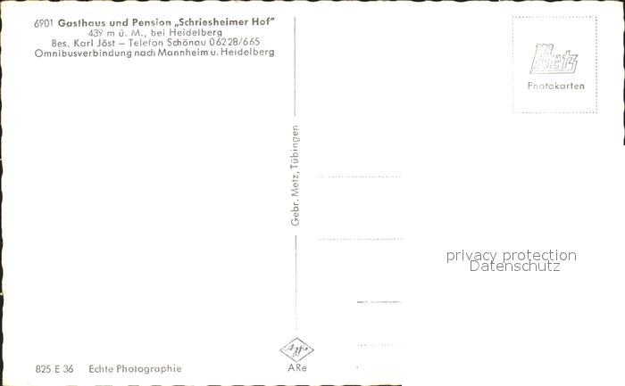 72096710 Heidelberg Neckar Gasthaus Pension Schriesheimer Hof Gartenterrasse postalisch nicht gelaufen Erhaltung siehe scans KatCode: 11110008221000
