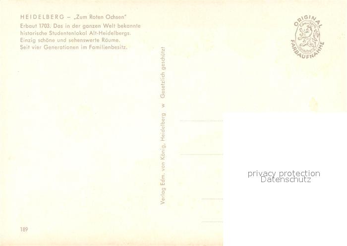 73720366 Heidelberg Neckar Gasthof Zum roten Ochsen 18. Jhdt. Historisches Studentenlokal postalisch nicht gelaufen Erhaltung siehe scans [FriedD77] KatCode: 11110008221000