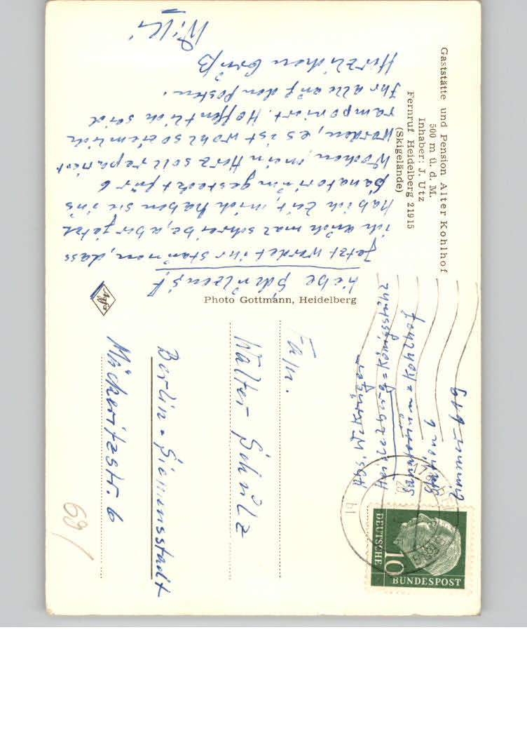 31148280 Heidelberg Neckar Gaststaette – Pension Alter Kohlhof postalisch nicht gelaufen KatCode: 11110008221000