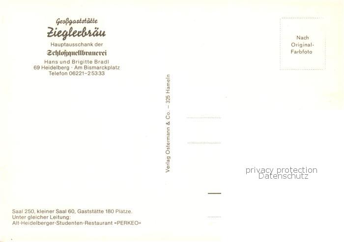 73844717 Heidelberg Neckar Grossgaststaette Zieglerbraeu Schlossquellenbrauerei Gaststube postalisch nicht gelaufen Erhaltung siehe scans [WerneD78] KatCode: 11110008221000