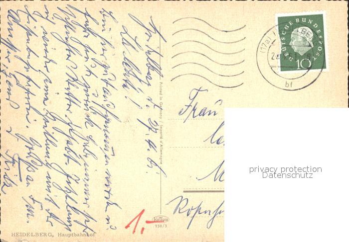 72133123 alte Postkarte Heidelberg Neckar Hauptbahnhof postalisch gelaufen Erhaltung siehe scans KatCode: 11110008221000