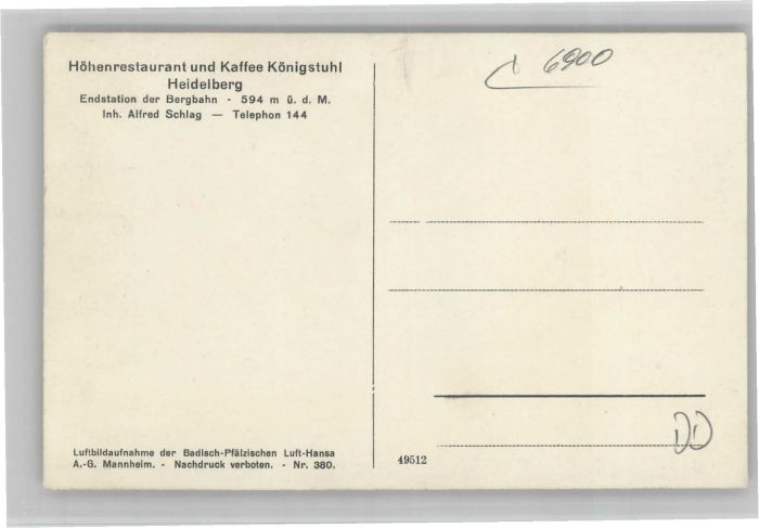 40705872 Heidelberg Neckar Heidelberg Fliegeraufnahme Höhenrestaurant Kaffee Königstuhl * KatCode 11110008221000