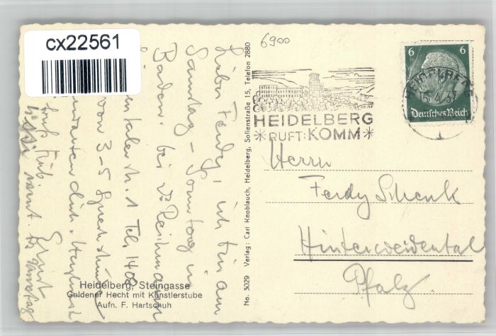 30751293 alte Postkarte Heidelberg Neckar Heidelberg Gasthaus Goldener Hecht postalisch gelaufen KatCode: 11110008221000