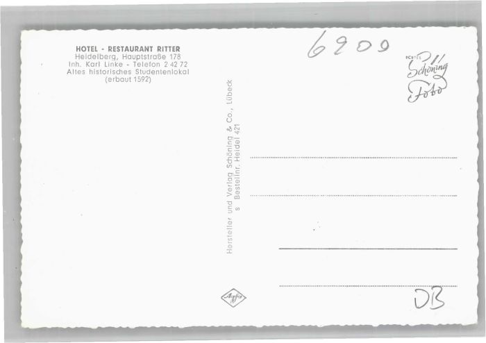 40705925 Heidelberg Neckar Heidelberg Hotel Restaurant Ritter KatCode 11110008221000