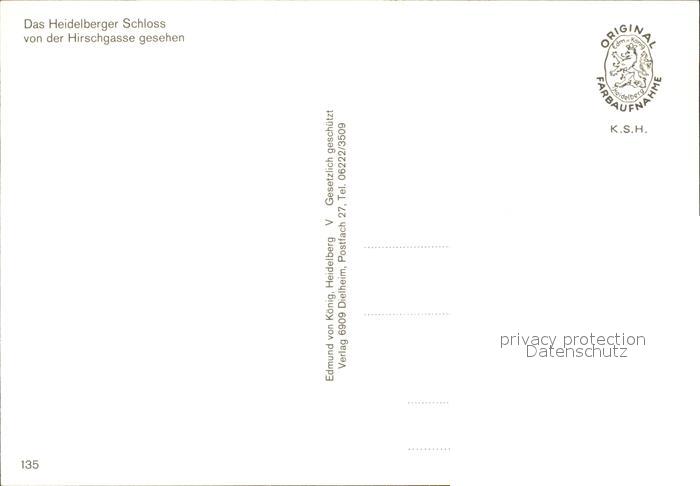 72566268 Heidelberg Neckar Heidelberger Schloss von der Hirschgasse gesehen postalisch nicht gelaufen Erhaltung siehe scans [WerneD78] KatCode: 11110008221000