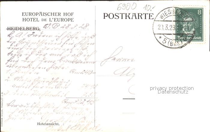 72096672 alte Postkarte Heidelberg Neckar Hotel Europaeischer Hof postalisch gelaufen Erhaltung siehe scans KatCode: 11110008221000