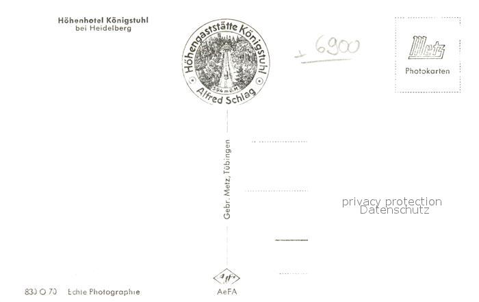 42969942 Heidelberg Neckar Hotel Koenigstuhl postalisch nicht gelaufen Erhaltung siehe scans [AndreD76] KatCode: 11110008221000