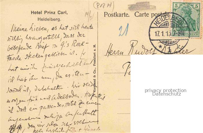 74093618 alte Postkarte HEIDELBERG Neckar Hotel Prinz Carl am Fusses des Schlosses und der Bergbahn Kuenstlerkarte postalisch gelaufen Erhaltung siehe scans [FriedD77] KatCode: 11110008221000