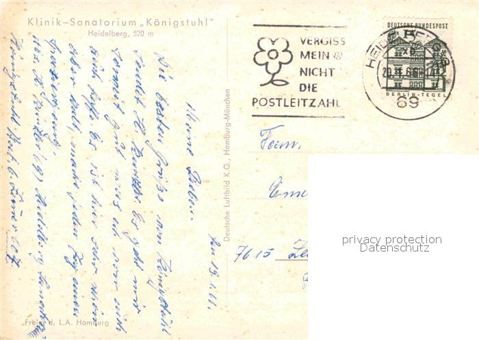 72756676 alte Postkarte Heidelberg Neckar Klinik Sanatorium Koenigstuhl Fliegeraufnahme postalisch gelaufen Erhaltung siehe scans [WerneD78] KatCode: 11110008221000