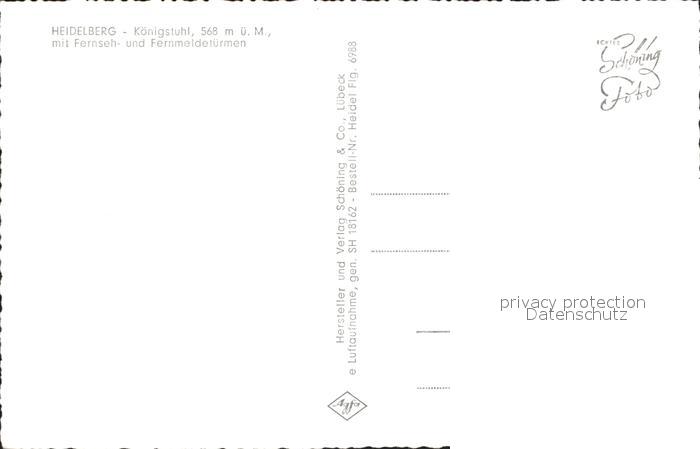 72278379 Heidelberg Neckar Koenigstuhl mit Fernseh und Fernmeldetuermen Fliegeraufnahme postalisch nicht gelaufen Erhaltung siehe scans KatCode: 11110008221000