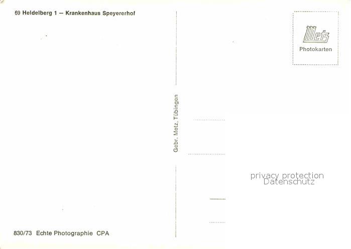 72852900 Heidelberg Neckar Krankenhaus Speyererhof postalisch nicht gelaufen Erhaltung siehe scans [FriedD77] KatCode: 11110008221000