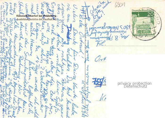 74048458 alte Postkarte HEIDELBERG Neckar Kuemmelbacherhof Ausbildungsstaette der Kaufhof AG postalisch gelaufen Fliegeraufnahme Erhaltung siehe scans [FriedD77] KatCode: 11110008221000