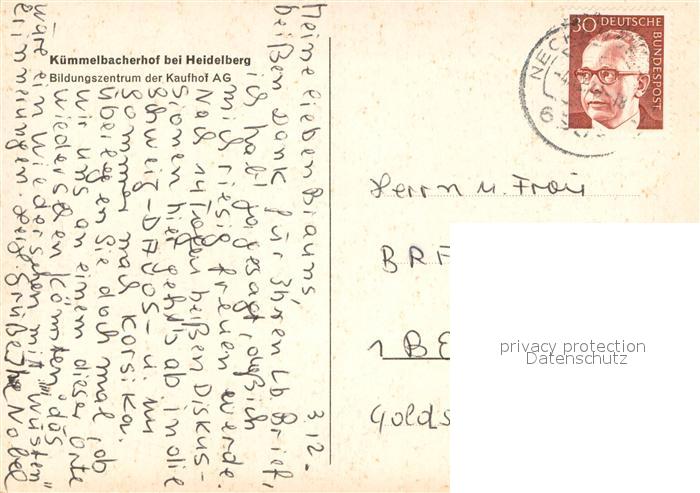 73667008 alte Postkarte Heidelberg Neckar Kuemmelbacherhof Fliegeraufnahme postalisch gelaufen Erhaltung siehe scans [WerneD78] KatCode: 11110008221000