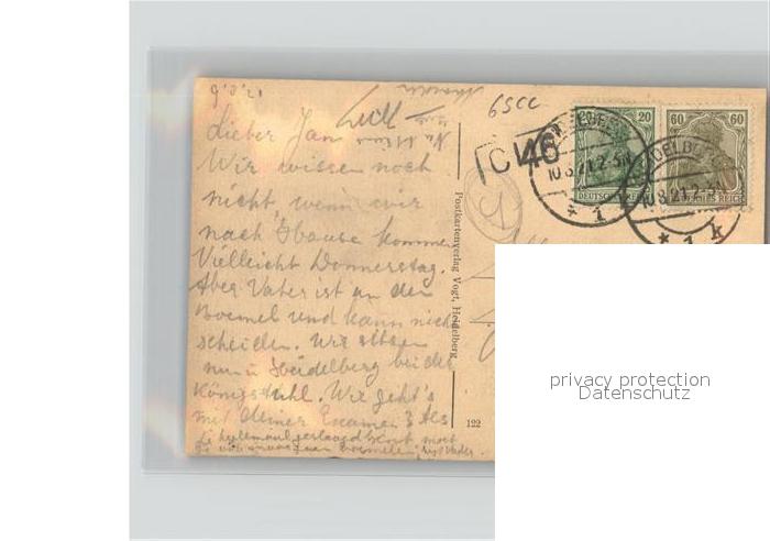 41620183 alte Postkarte Heidelberg Neckar Molkenkur haus postalisch gelaufen Erhaltung siehe scans KatCode: 11110008221000