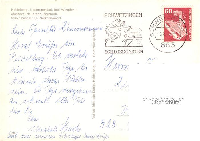 72993750 alte Postkarte Heidelberg Neckar Neckargemuend Bad Wimpfen Mosbach Eberbach Schwalbennest postalisch gelaufen Erhaltung siehe scans [AndreD76] KatCode: 11110008221000