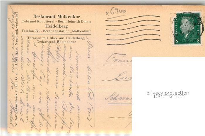 42970786 alte Postkarte Heidelberg Neckar Restaurant Molkenkur postalisch gelaufen Erhaltung siehe scans [AndreD76] KatCode: 11110008221000