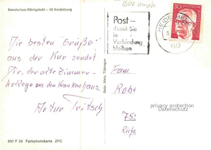 74048537 alte Postkarte HEIDELBERG Neckar Sanatorium Koenigsfeld postalisch gelaufen Erhaltung siehe scans [WerneD78] KatCode: 11110008221000