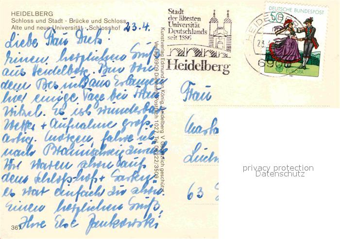 72771976 alte Postkarte Heidelberg Neckar Schloss Stadt Bruecke Universitaet postalisch gelaufen Erhaltung siehe scans [LiesaD40] KatCode: 11110008221000