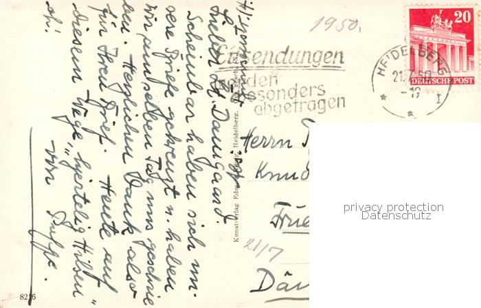 74052422 alte Postkarte Heidelberg Neckar Schlossblick Rathaus und Marktplatz mit Herkulesbrunnen postalisch gelaufen Erhaltung siehe scans [FriedD77] KatCode: 11110008221000