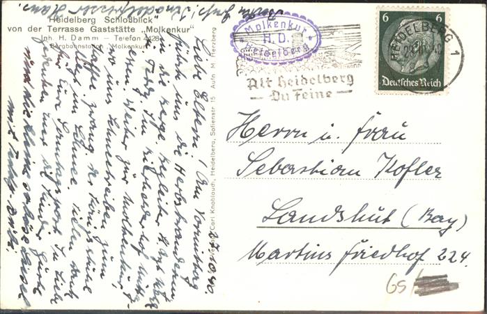 41083838 Heidelberg Neckar Schlossblick von Terrasse Gaststätte Molkenkur KatCode 11110008221000