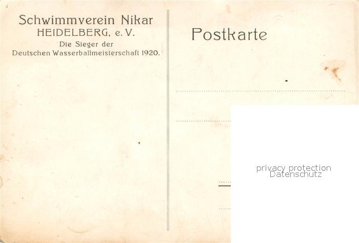 33708579 Heidelberg Neckar Schwimmverein Nikar Sieger der Dt Wasserballmeisterschaft 1920 Portraits postalisch nicht gelaufen Erhaltung siehe scans [WerneD78] KatCode: 11110008221000