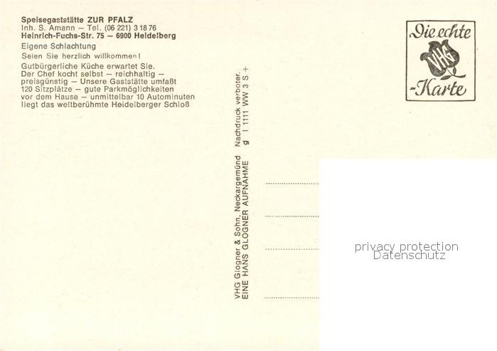 73726224 Heidelberg Neckar Speisegaststaette Zur Pfalz Teilansichten postalisch nicht gelaufen Erhaltung siehe scans [LiesaD40] KatCode: 11110008221000