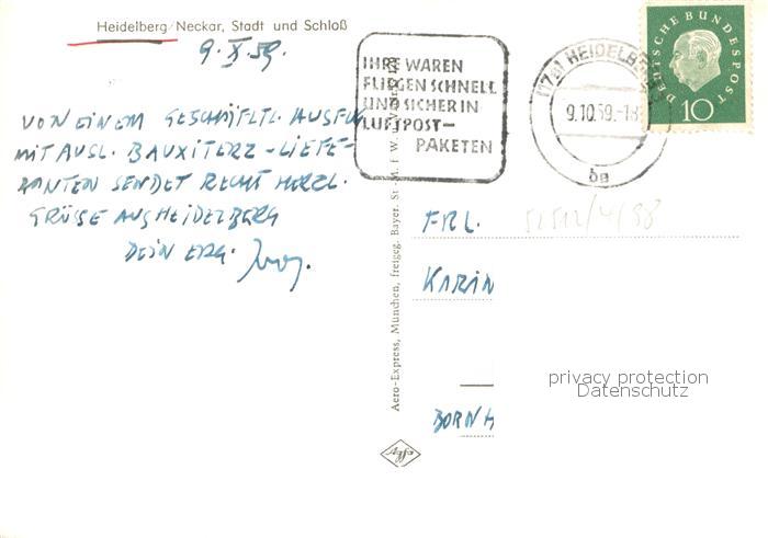 73761078 alte Postkarte Heidelberg Neckar Stadt und Schloss Fliegeraufnahme postalisch gelaufen Erhaltung siehe scans [WerneD78] KatCode: 11110008221000
