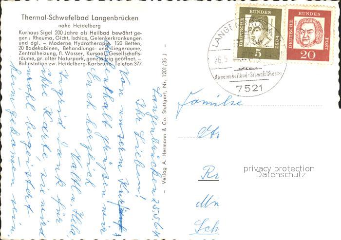 72294454 alte Postkarte Heidelberg Neckar Thermal Schwefelbad Langenbruecken postalisch gelaufen Erhaltung siehe scans KatCode: 11110008221000