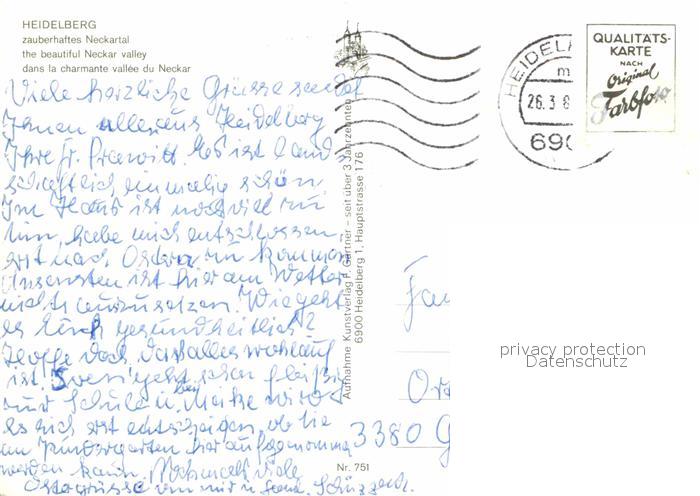 72865277 alte Postkarte Heidelberg Neckar Zauberhaftes Neckartal postalisch gelaufen Erhaltung siehe scans [FriedD77] KatCode: 11110008221000