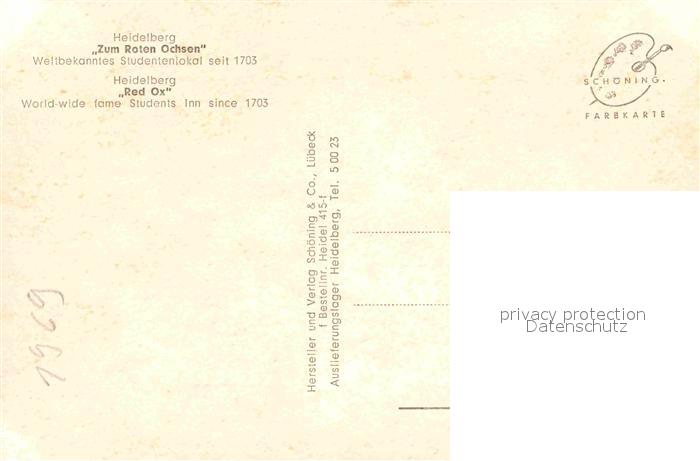 72714868 Heidelberg Neckar Zum Roten Ochsen postalisch nicht gelaufen Erhaltung siehe scans [KathaD79] KatCode: 11110008221000