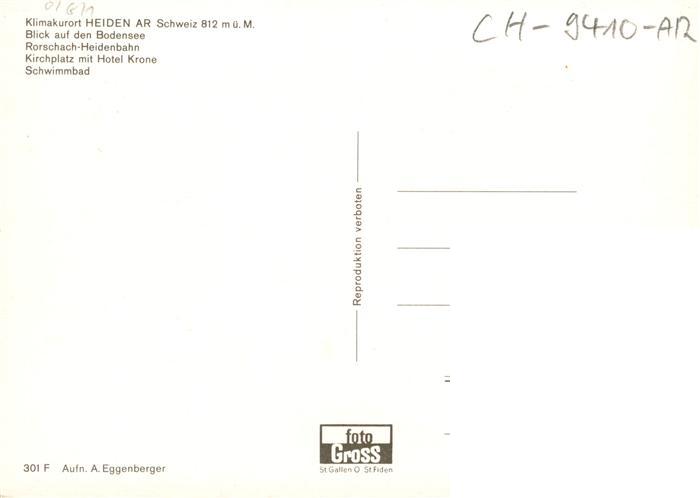 13895967 Heiden AR Bodenseeblick Rohrschach Heidenbahn Kirchplatz mit Hotel Krone Schwimmbad postalisch nicht gelaufen Erhaltung siehe scans [WerneD78] KatCode: 11470020070564