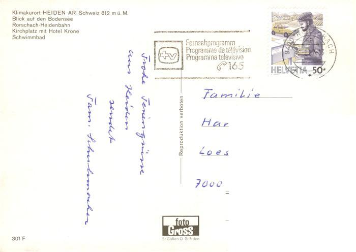 13921158 alte Postkarte Heiden AR Bodenseeblick Rorschach Heidenbahn Kirchplatz mit Hotel Krone Schwimmbad postalisch gelaufen Erhaltung siehe scans [FriedD77] KatCode: 11470020070564