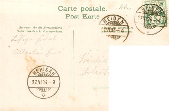 13939529 alte Postkarte Heiden AR Ev Kirche Schulhaus Freihof Hotel Krone Bodenseedampfer postalisch gelaufen Erhaltung siehe scans [WerneD78] KatCode: 11470020070564