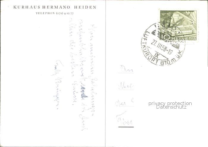 11628222 alte Postkarte Heiden AR Kurhaus Hermano postalisch gelaufen Erhaltung siehe scans KatCode: 11470020070564