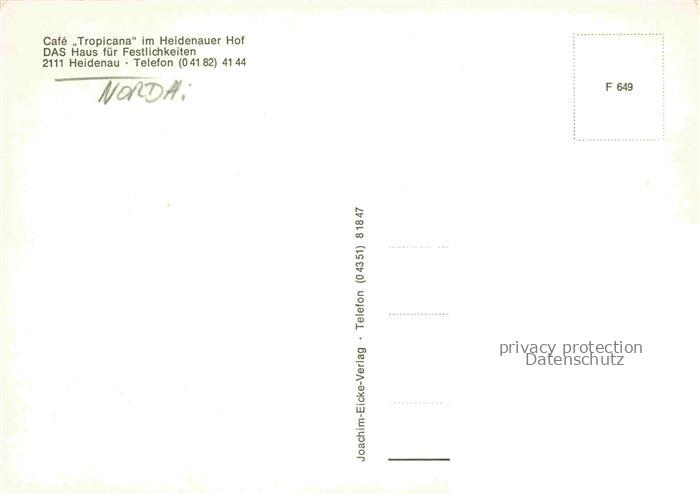74152222 Heidenau Nordheide Harburg Niedersachsen Cafe Tropicana im Heidenauer Hof postalisch nicht gelaufen Erhaltung siehe scans [WerneD78] KatCode: 11110003353018