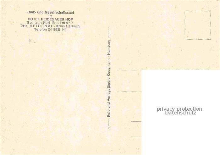 74042641 Heidenau Nordheide Harburg Tanz- und Gesellschaftssaal im Hotel Heidenauer Hof postalisch nicht gelaufen Erhaltung siehe scans [FriedD77] KatCode: 11110003353018
