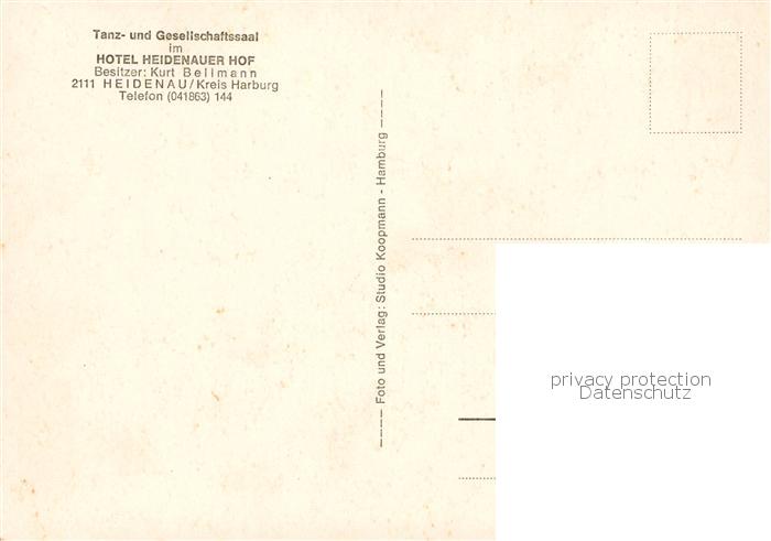 73856788 Heidenau Nordheide Hotel Heidenauer Hof Tanz und Gesellschaftssaal postalisch nicht gelaufen Erhaltung siehe scans [WerneD78] KatCode: 11110003353018