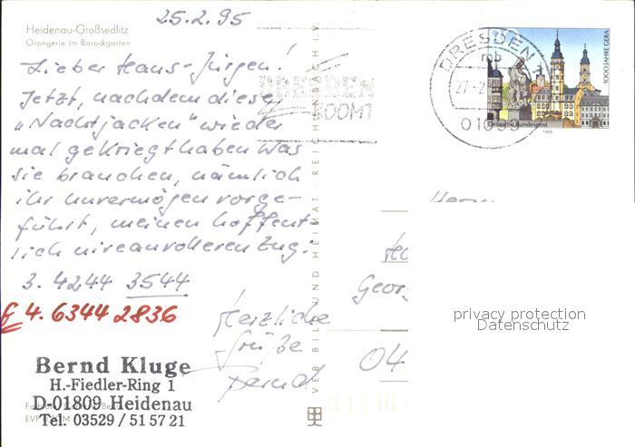 72259569 alte Postkarte Heidenau Sachsen Orangerie im Barockgarten postalisch gelaufen Erhaltung siehe scans KatCode: 11110014287140