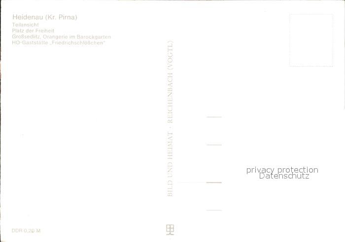 72017603 Heidenau Sachsen Teilansicht Platz der Freiheit Orangerie Barockgarten HO Gaststaette Friedrichschloesschen postalisch nicht gelaufen Erhaltung siehe scans KatCode: 11110014287140